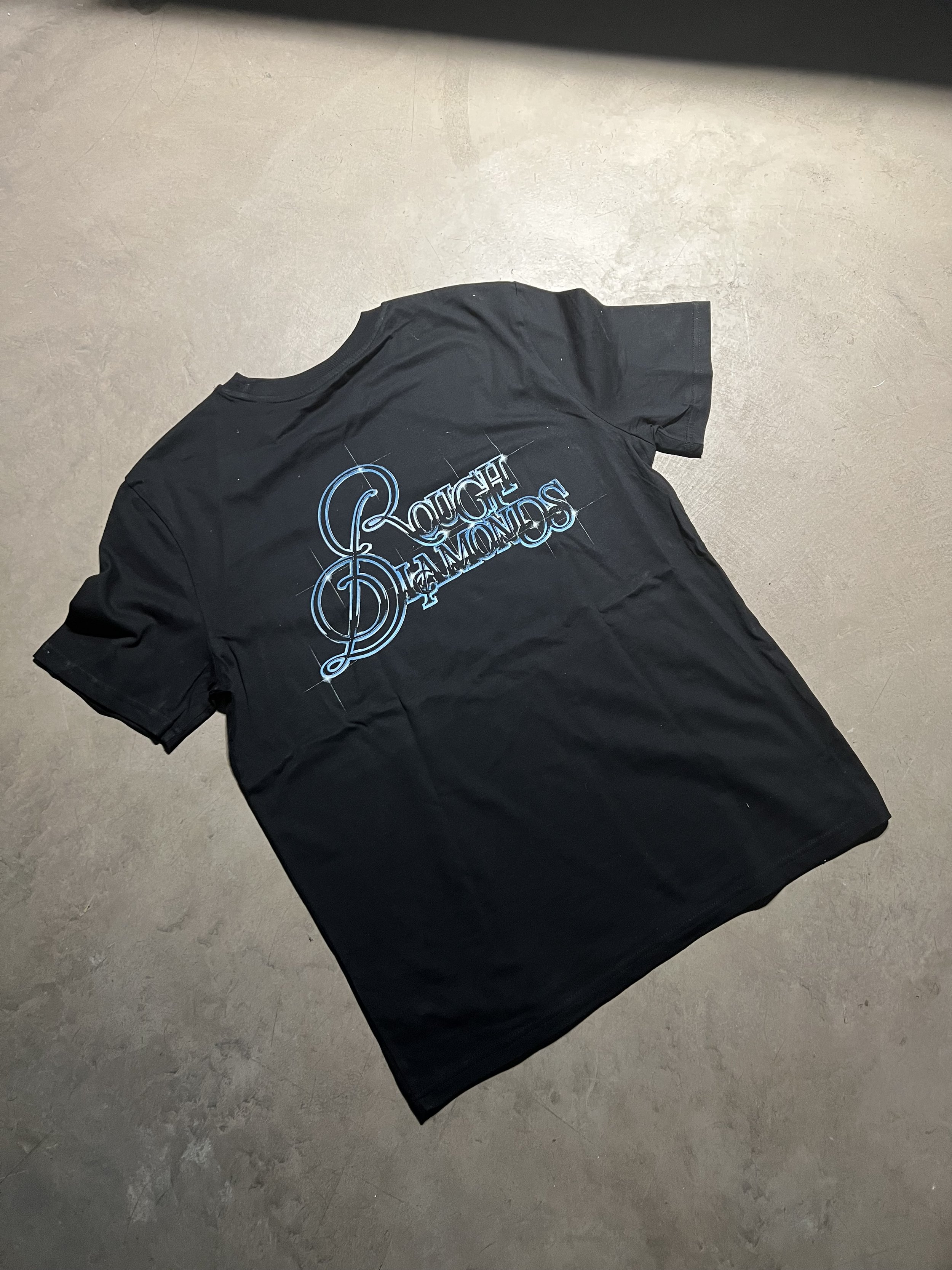 To complete the universe of Rough Diamonds, we also developed a dedicated merchandising drop. Limited-edition T-shirts were designed as wearable extensions of the project’s identity, carrying the “underground” spirit of the sale beyond the exhibition and into the streets